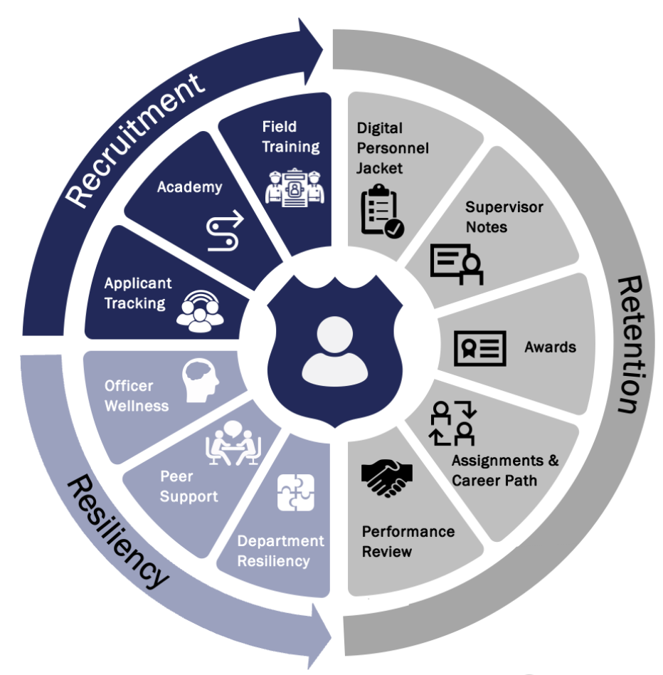 Our R3 solution—Recruitment, Retention, and Resiliency—provides agencies with a complete, data-driven view of each officer from the moment they apply to the day they retire. This approach ensures agencies can attract the right talent, retain experienced officers, and build resilient teams prepared to meet the demands of modern policing.