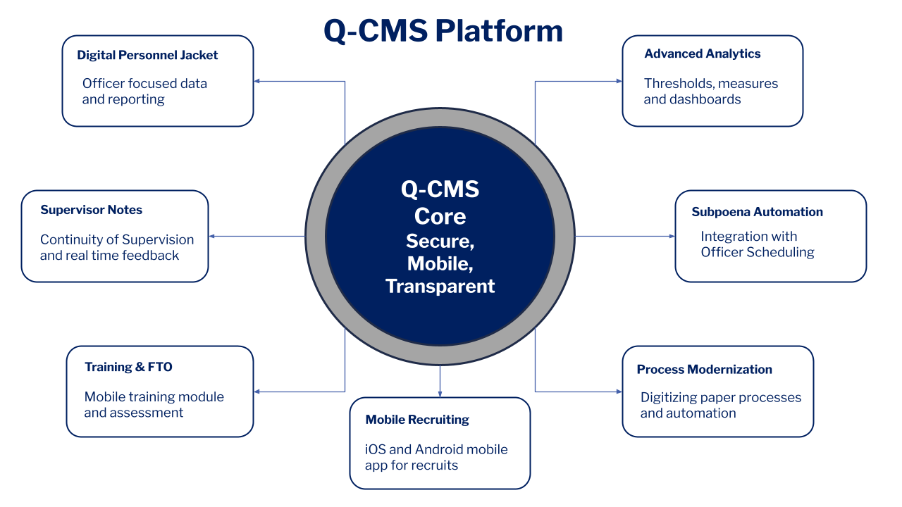 Q-CMS is a secure, cloud-based case management platform built specifically for law enforcement and justice agencies. Designed to replace outdated, paper-heavy workflows, Q-CMS delivers transparency, accountability, and mobile-first access across critical functions such as subpoenas, disciplinary processes, overtime management, personnel records, and training.